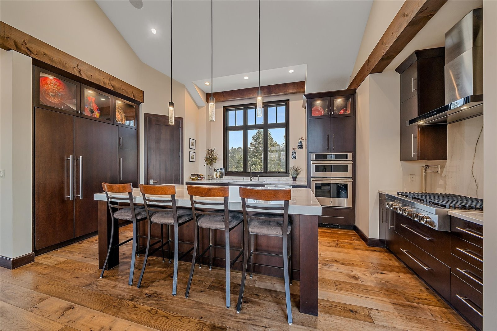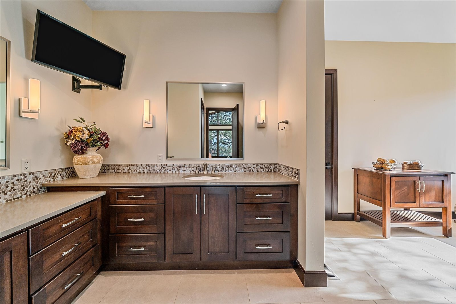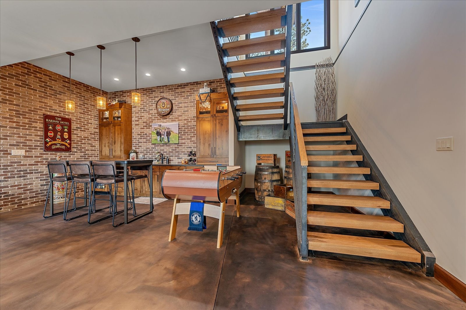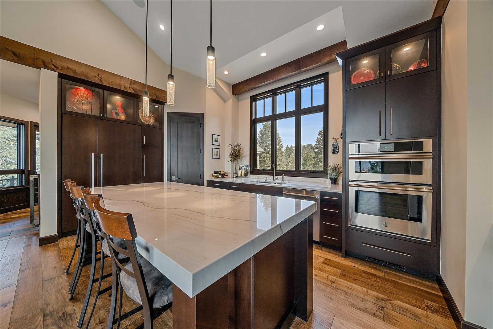 This is the ultimate estate with a blend of convenience, privacy & perhaps the best snow-capped views in Evergreen. This custom home offers luxurious, yet comfortable, mountain living with stunning architectural touches. There is a harmonious blend of rustic and modern finishes. As you enter the foyer, Mt. Blue Sky is optimally framed in the windows beyond. The great room offers a large entertaining area with a warm wood-paneled ceiling & over-sized fireplace. This area flows seamlessly into the dining area that has been designed for gatherings large or small & open to the gourmet kitchen w/ the epicurean in mind. From the gas range to enormous pantry and island, you will love cooking and engaging with family. Thoughtfully constructed with aging in place in mind, the home offers true main level living. A sumptuous primary suite captures the expansive views and a fireplace while the bath is magazine-worthy. Enjoy the huge closet that conveniently connects to the stunning laundry room. The main level office might be difficult to work in given the snow-capped vistas, but it is worth a try. The lower level is the ideal space for entertainment. A game room/family room welcomes you where the pub-like bar will become the hub of the space island & brick surround. A media room makes the perfect space for movie watching & there are two generously-sized bedroom (one has its own en-suite bath). The home gym means less trips leaving your private oasis. A huge bonus is the 2300 sqft unfinished space w/separate garage door. This is a blank slate for your storage, living expansion, hobbies. The attached 3 car garage is heated, and offers a shower and entrance into a mud room that was designed with 4-legged friends in mind. As astonishing as the interior is, the exterior is awesome w/ upper level deck offering an outdoor living room w/ gas fireplace, TV space and multiple seating areas. The lower patio has a private hot tub. Enjoy a real yard, & gentle driveway.